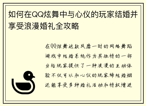 如何在QQ炫舞中与心仪的玩家结婚并享受浪漫婚礼全攻略